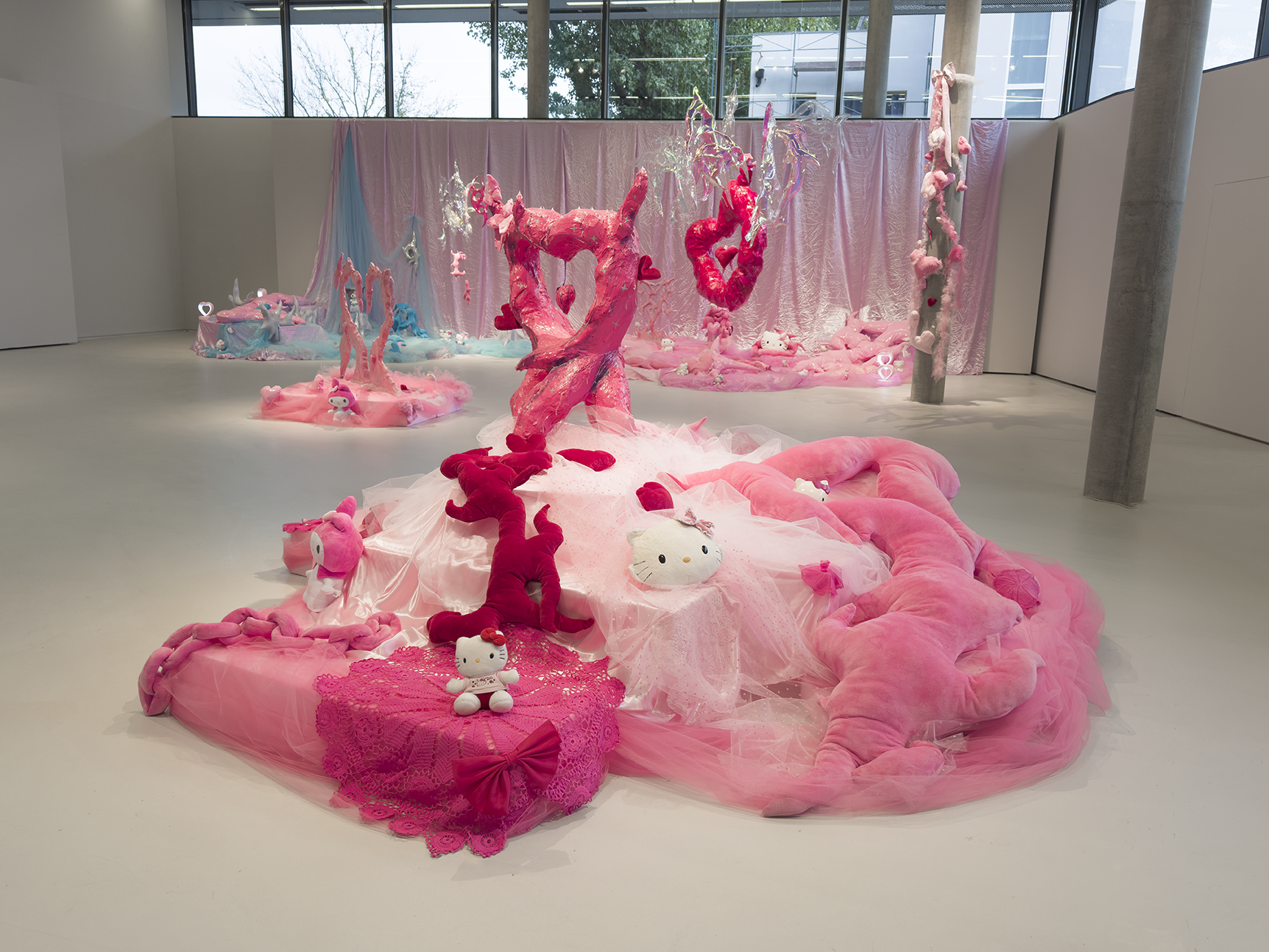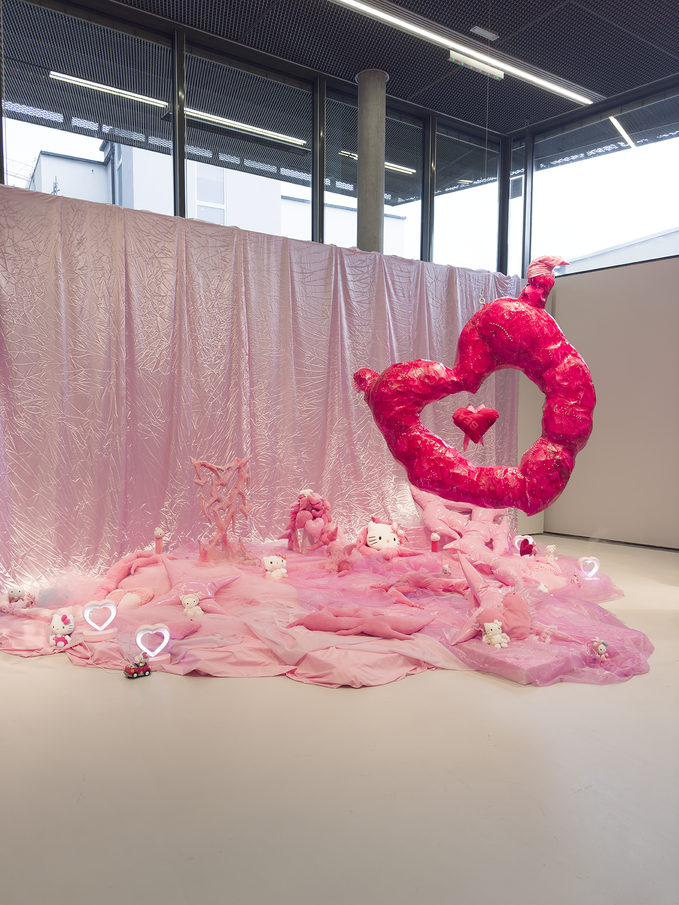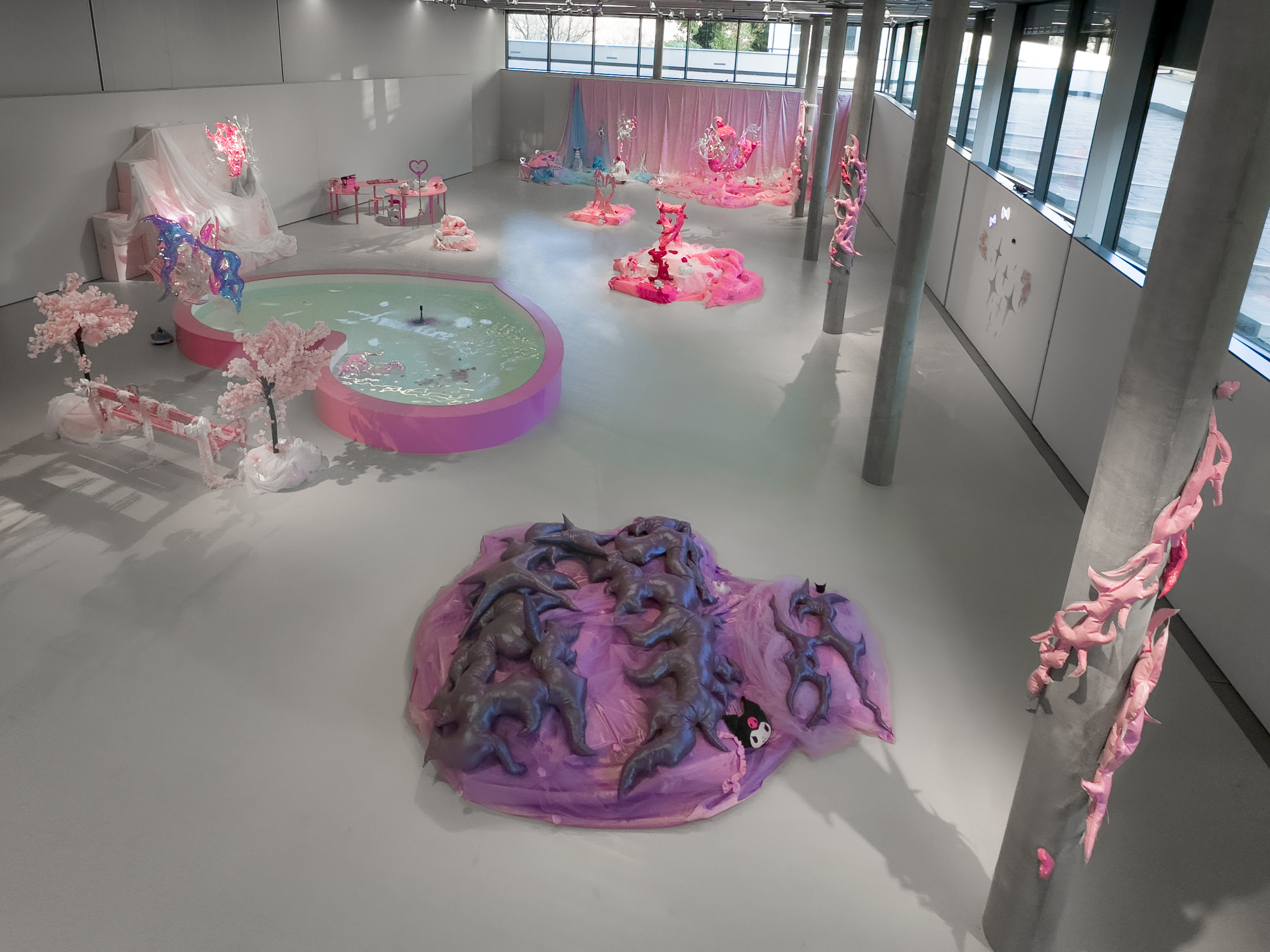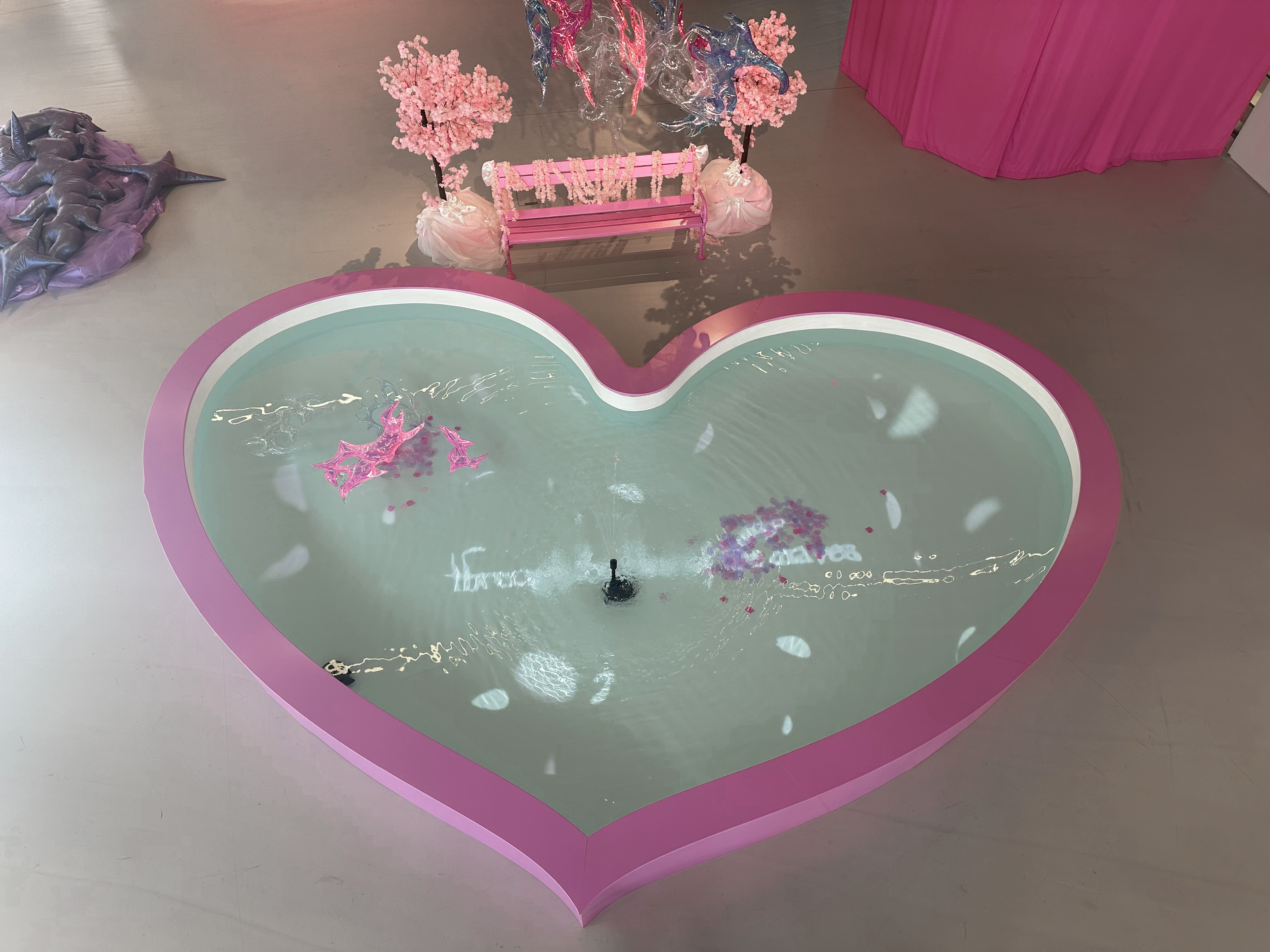 Water, flow, and softness recur as material and sensation, shaping an environment where boundaries dissolve and queer futurity becomes spatial and immersive. Rather than pointing toward a distant future, the work insists on the present as a site of transformation. Realizing utopia not as deferred fantasy but as a speculative present continuously lived into being.
