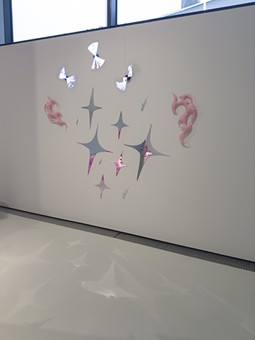 The installation conjures a speculative, lesbian-coded cyberscape:a place of fluid connection and queer longing, where touch transcends screens and matter drifts between states. It invites the viewer into a soft, utopian elsewhere, one that imagines technology not as barrier, but as a vessel for tenderness, dissolution, and becoming.
