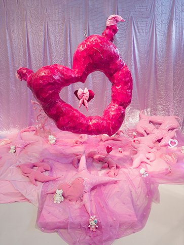 Her practice melts through writing, rendering, video, and sculptural fabrication, translating ephemeral online imaginaries into tactile form. Screens leak into space, images harden into objects, and installations become sites of exchange where looking, touching, and dwelling blur together. What circulates online ~fantasy, affect, fragments of community ~ is gathered, reshaped, and offered back as shared experience. Sculpture and installation function not as representations, but as conditions: spaces where desire can linger, soften edges, generating new ontologies of relation, presence and reality.