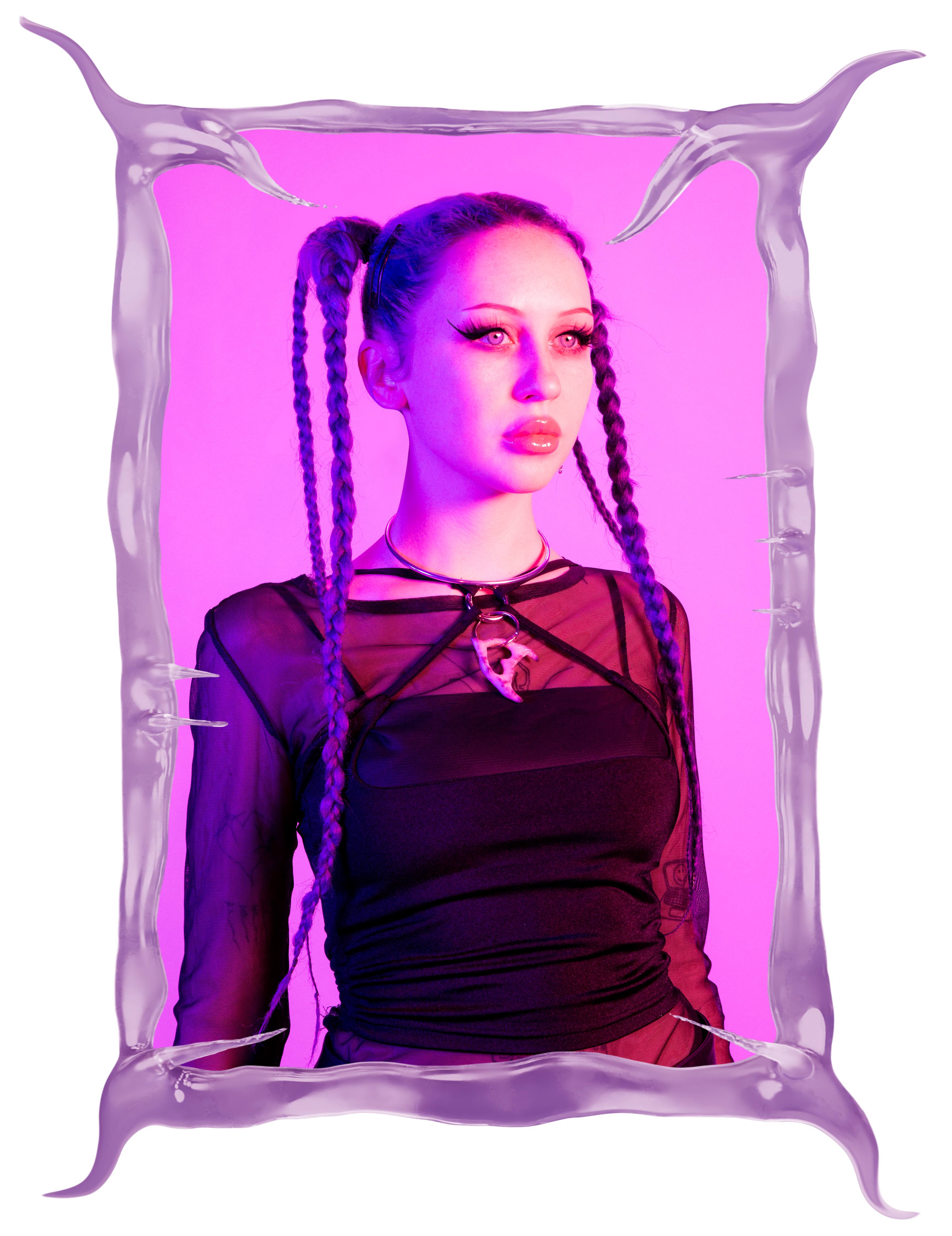 Working under the networked persona @cybervoid69, she mobilizes this cyclical process as a method of worldbuilding, integrating research, archiving, rendering, sculptural fabrication, and installation into a fluid praxis that collapses consumption and production, reception and transmission.